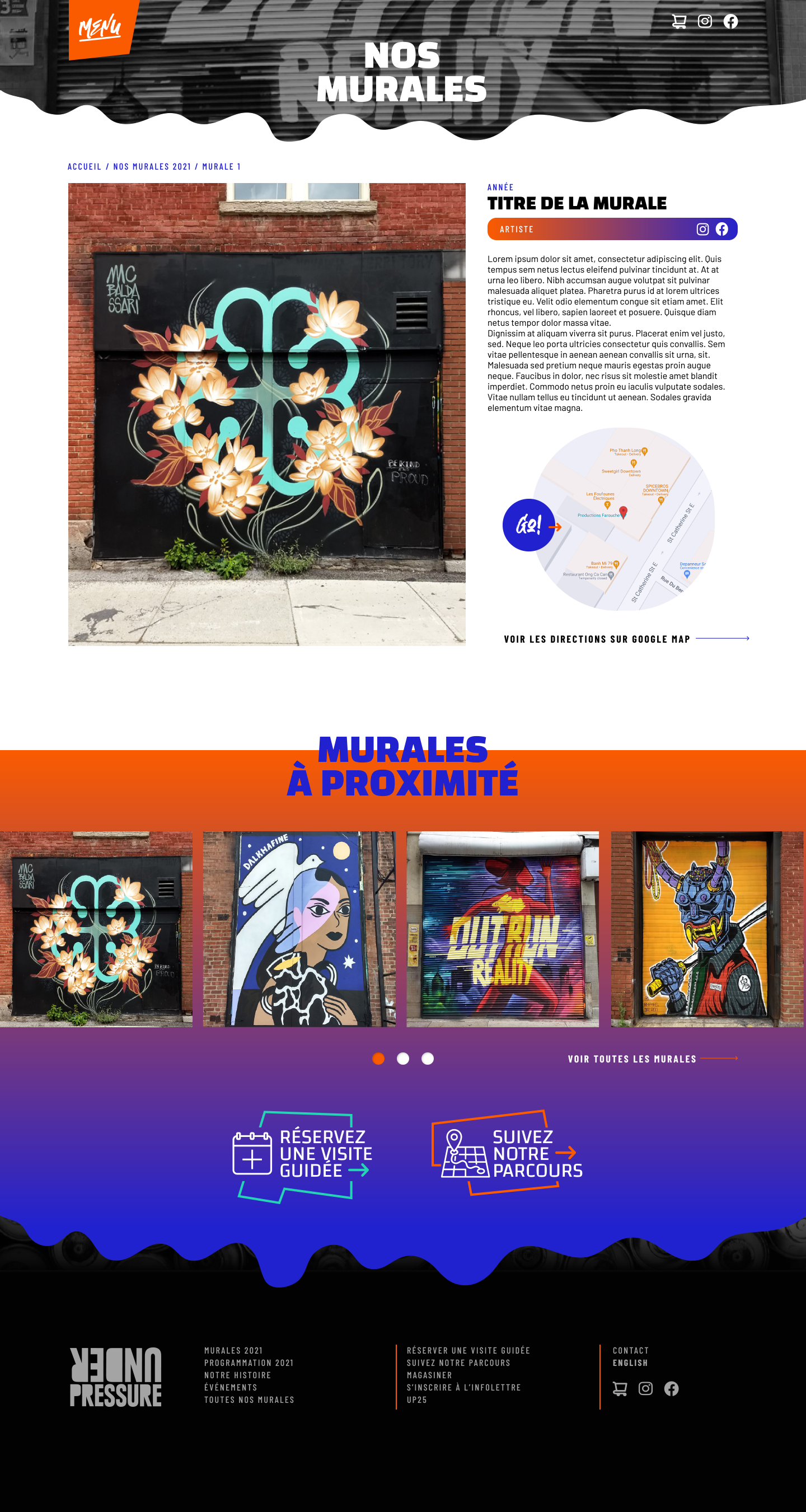 Proposition de design de site web pour le festival de murales Under Pressure